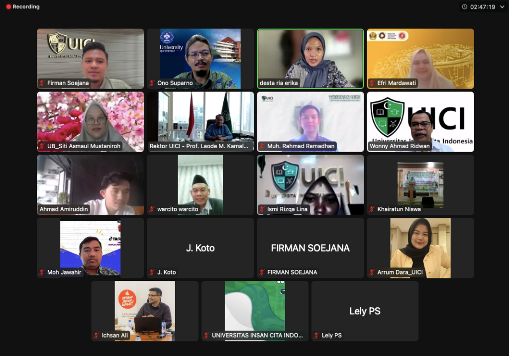 Program Studi Teknologi Industri Pertanian (TIP), Universitas Insan Cita Indonesia (UICI) mengadakan Workshop Kurikulum Program Studi Teknologi Industri Pertanian Universitas Insan Cita Indonesia (UICI) pada hari Selasa, 6 Februari 2024, 09.00 -12.00 WIB secara daring menggunakan Zoom Meeting. Narasumber dari Forum Komunikasi Program Studi Industri Pertanian Indonesia/FKPS-IPI (Dr. Efri Mardawati), Asosiasi Profesi Teknologi Agroindustri/APTA (Dr. Siti Asmaul Mustaniroh), Ketua Perhimpunan Teknik Pertanian Indonesia/PERTETA (Dr. Destrial), dan Ketua Departemen Teknologi Industri Pertanian IPB University (Prof. Dr. Ono Suparno).